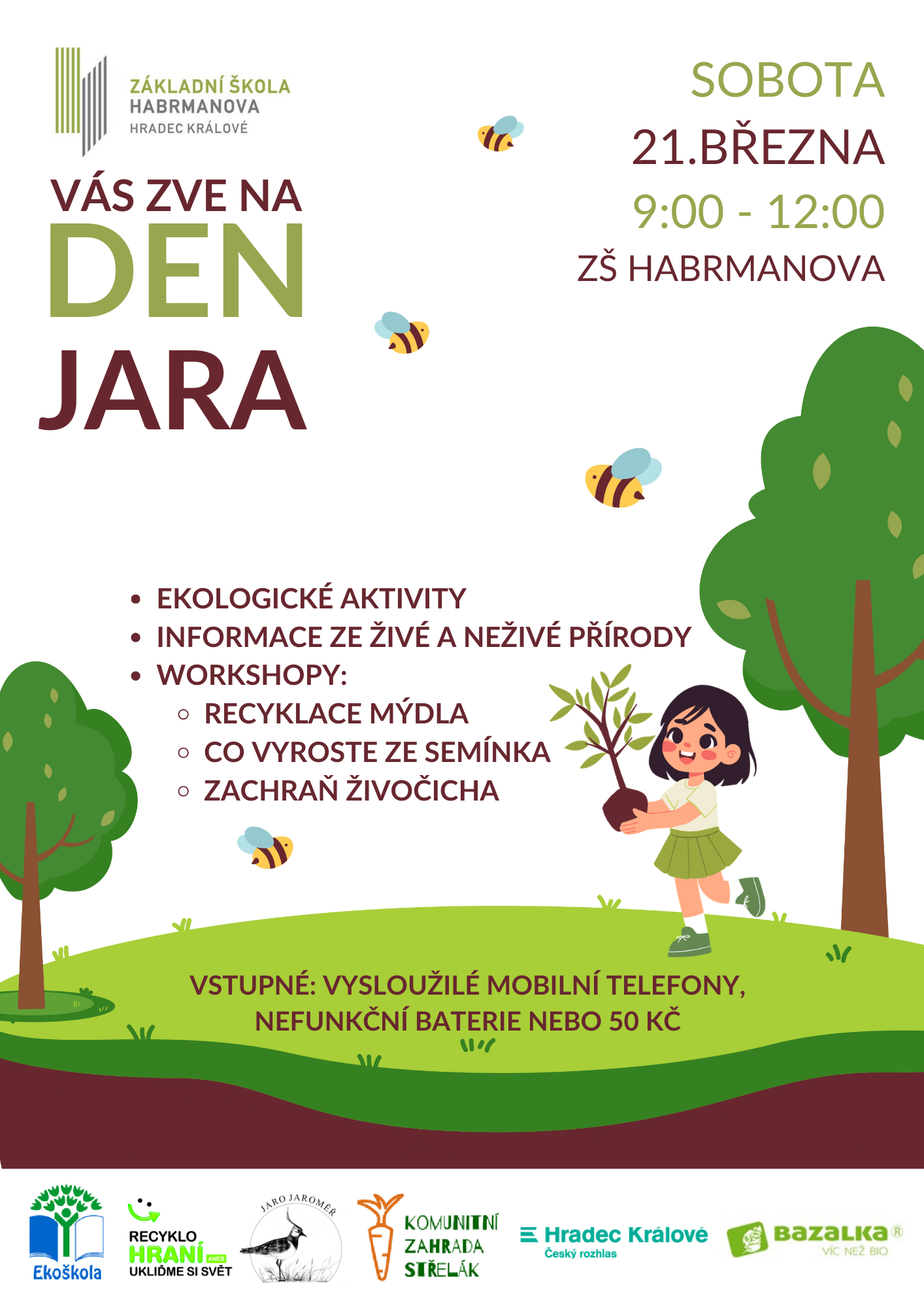 přijďte v sobotu 21. března 2026 oslavit Den jara na základní škole Habrmanova v Hradci Králové.
